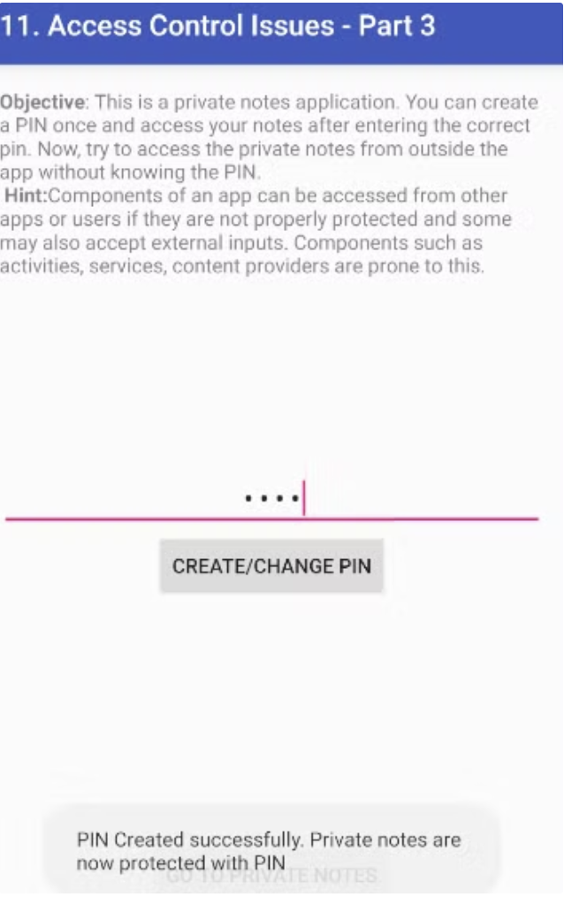 원래는 AccessControl3NotesActivity 파일에서 볼 수 있듯이, 입력할 때의 pin이 등록된 user의 pin과 일치할 때, NotesProvider에서 불러와 사용자에게 해당 화면을 출력해주는데,