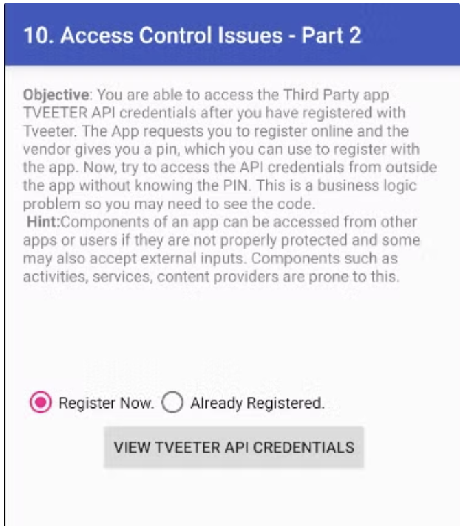 apicview.setText("Register yourself at http://payatu.com to get your PIN and then login with that PIN!");