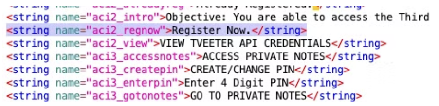우선 RadioButton rbregnow = (RadioButton) findViewById(R.id.aci2rbregnow); 부분에서 aci2rbregnow 가 /res/values/strings.xml 경로에서 확인할 수 있었는데