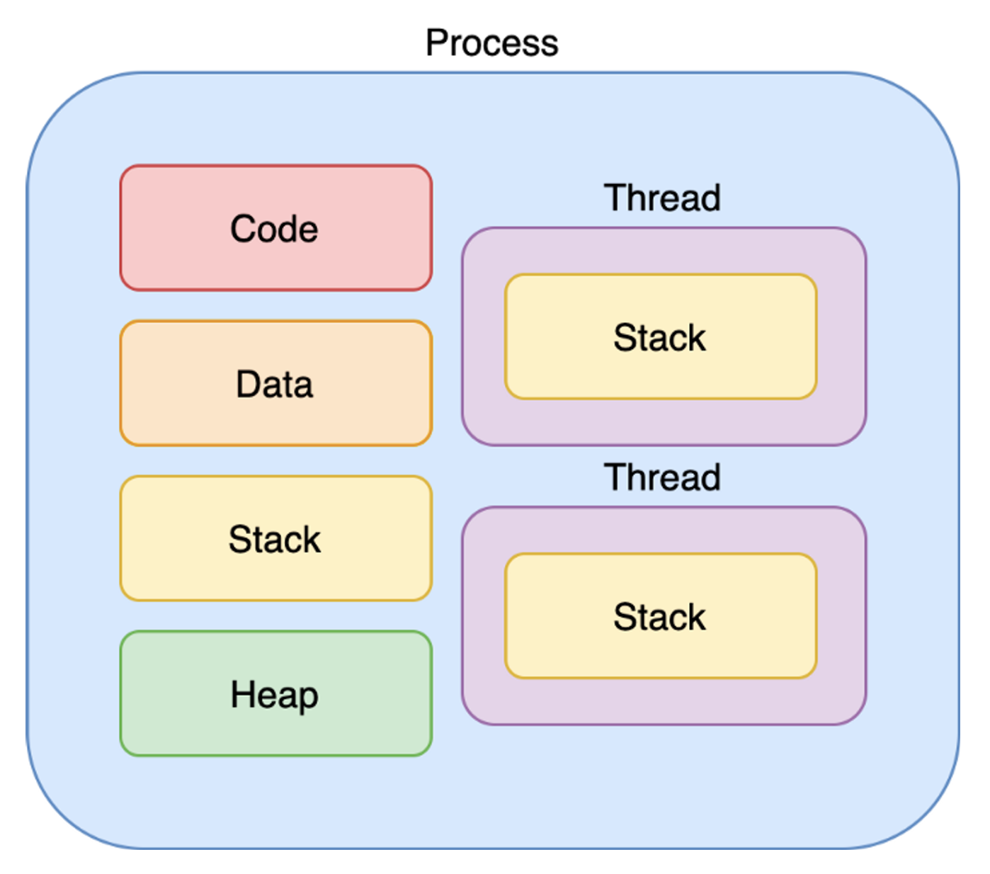 • 프로세스 하나만을 사용해서 프로그램을 실행하기에는 메모리의 낭비가 발생한다. 스레드는 프로세스와 다르게 스레드 간 메모리를 공유하며 작동한다.