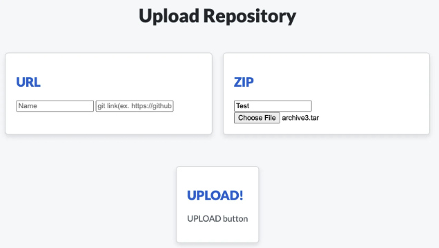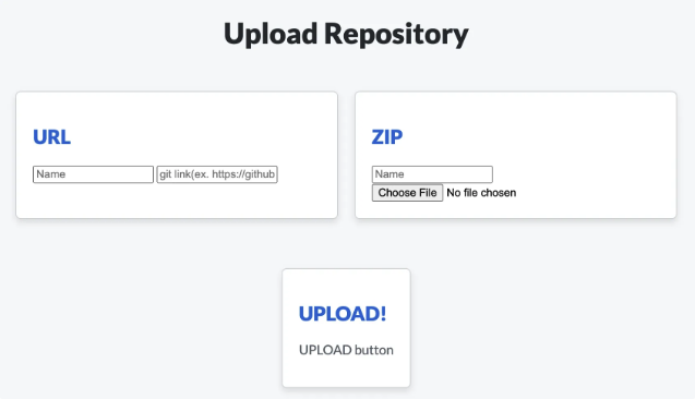 이렇게 Zip을 업로드할 수 있는 폼과 URL 즉 링크를 업로드할 수 있는 폼이 있다.