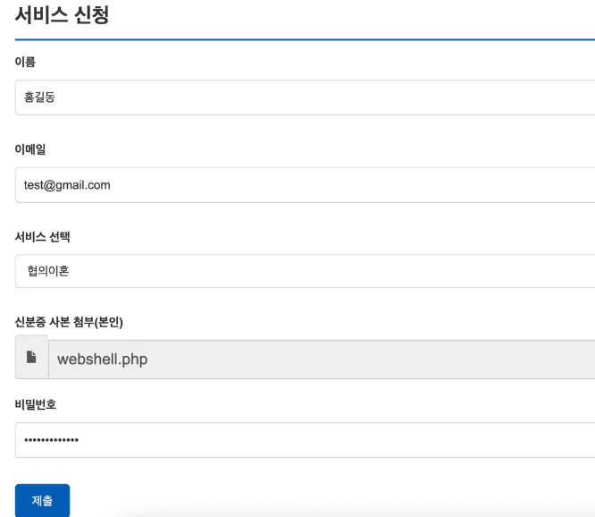 상단탭에서 서비스 신청 기능 존재, 여기서 파일 업로드 가능하다.