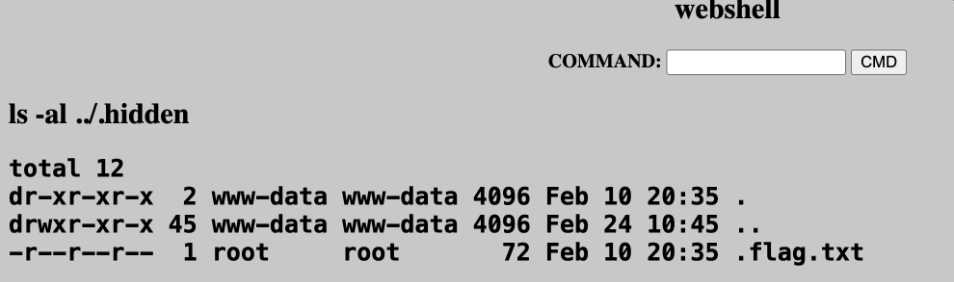 그리고 명령어를 입력했을 때 hidden 디렉토리 경로를 확인할 수 있었고, 해당 경로에 들어가게되면,
